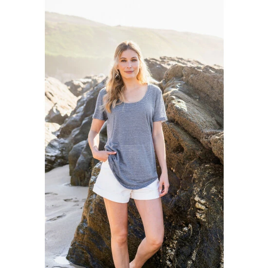 When the temperatures start to creep up (and they can’t wait for that), you need the right fabric blends in your wardrobe. Celtic & Co versatile scoop-neck, curved-hem T-shirt has been crafted in 100% linen marked with a masters of linen accreditation and sourced from a nearby supplier to reduce emissions. Created using more sustainable washing processes and dye with a reduced impact on the planet, it feels every bit as good as it looks.