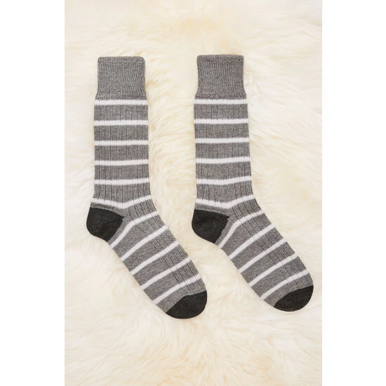 We love the sportive rugby stripe of our new ladies’ socks, cut with a regular length for everyday styling. This pair is crafted in luxuriously soft Merino wool blended with cotton for a clever balance of temperature-regulating comfort, natural moisture wicking and reliable breathability. Framed with solid blocks at the heel and toe, this design makes a superb gift for someone special – or simply for yourself!