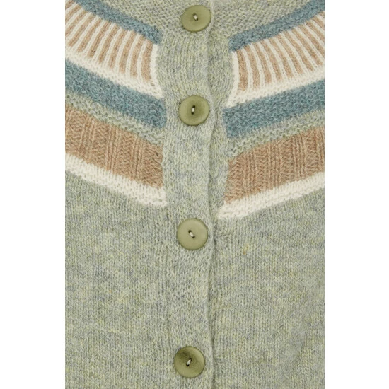 This pure wool cardigan from Celtic & Co has a traditional look. It’s cut to a regular fit, with a classic crew neckline and button fastening. This piece has been knitted with statement stitch detail around the chest and back. The ribbed accents create the perfect, snug finish.
